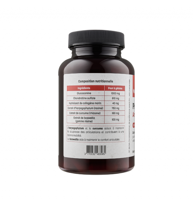 Un allié puissant pour vos articulations, formulé à partir d'actifs naturels reconnus pour leur efficacité. Avec de l'harpagophytum, du curcuma, de la boswellie, de la glucosamine, de la chondroïtine et du collagène, cette formule complète aide à soutenir la mobilité et le confort articulaire.