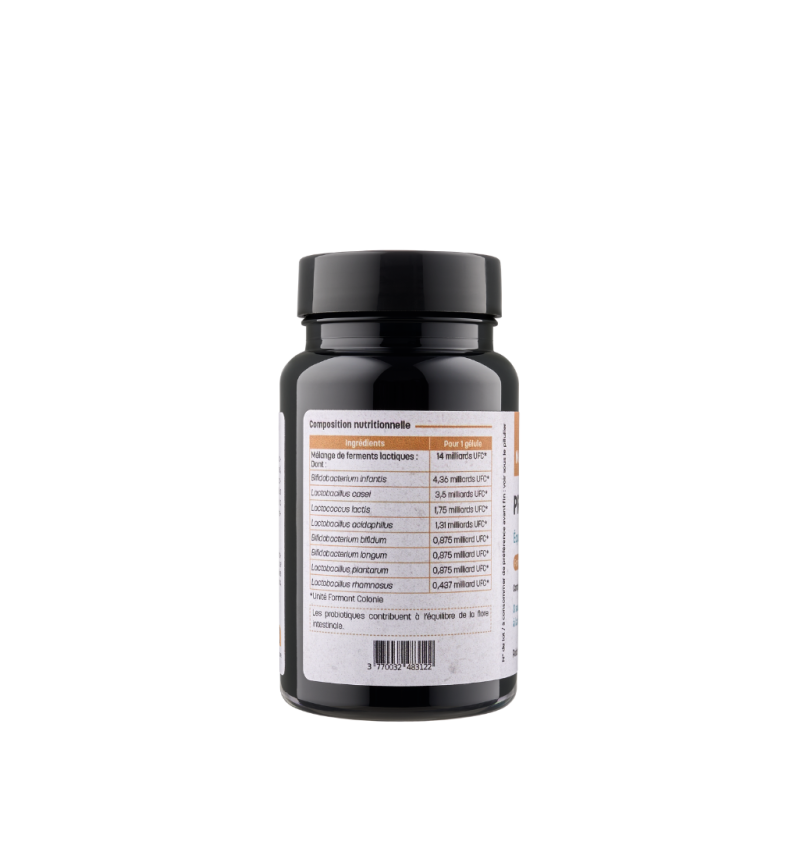 Découvrez une solution naturelle et efficace pour soutenir votre flore intestinale grâce à notre formule avancée de probiotiques. Avec ses 8 souches de ferments lactiques soigneusement sélectionnées et ses 14 milliards d’UFC* par gélule à la fabrication, ce complément est conçu pour contribuer à l’équilibre de votre microbiote et prendre soin de votre système digestif.