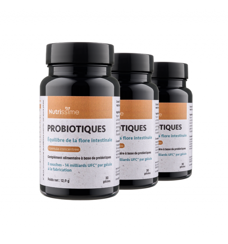 Probiotiques - Équilibre de la flore intestinale - Lot de 3 flacons