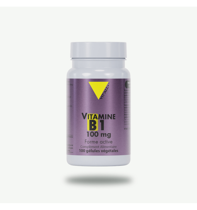Vitamine B1 forme active Vit'all+ : La vitamine B1, sous forme de thiamine mononitrate, est hautement biodisponible et hydrosoluble, ce qui en fait un allié efficace pour votre santé. Elle joue un rôle clé dans le maintien des fonctions psychologiques et cardiaques, tout en soutenant un métabolisme énergétique normal.
