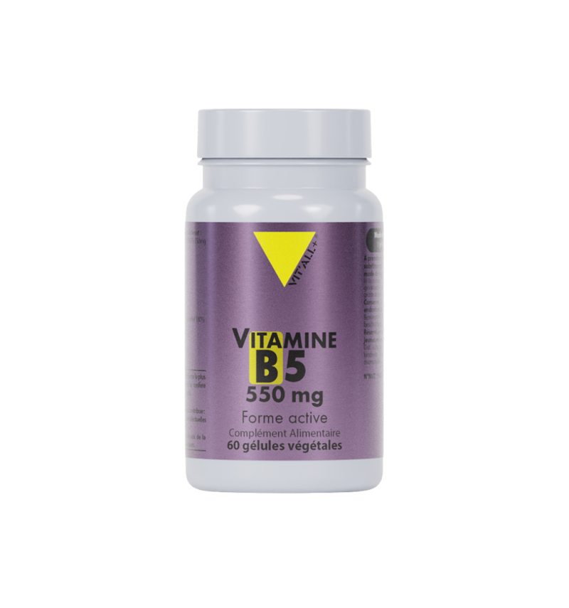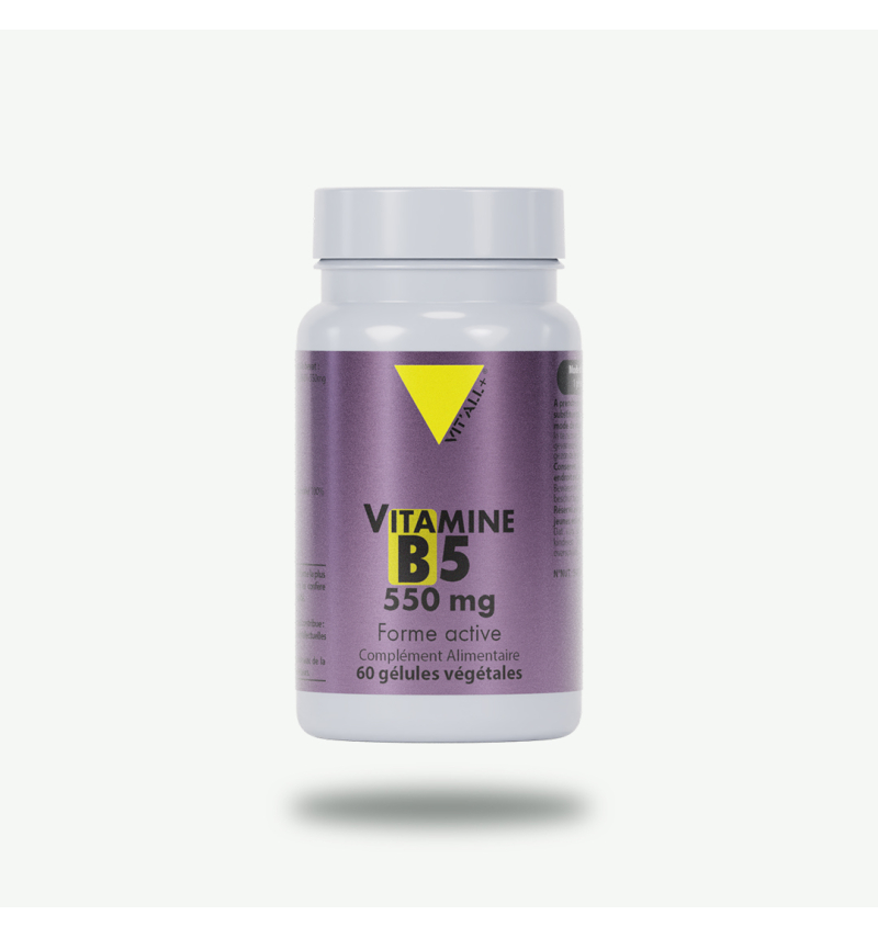 VITAMINE B5 - 550mg Vit’all+ : La Vitamine B5 sous forme active de D-Calcium pantothénate est hautement biodisponible et joue un rôle clé dans la réduction de la fatigue, le soutien des performances intellectuelles et le métabolisme de la vitamine D et des neurotransmetteurs.