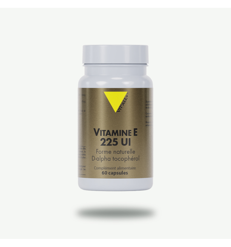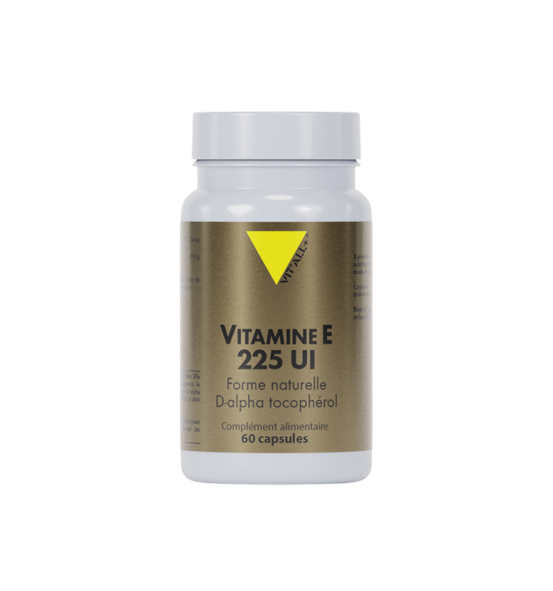 Vitamine E 225 U.I (D-alpha-tocophérol) – VIT'ALL+ : La vitamine E sous forme de D-alpha tocophérol est un puissant antioxydant, essentiel pour protéger les cellules contre le stress oxydatif. Extraite du soja, cette forme naturelle est hautement biodisponible et idéale pour lutter contre le vieillissement cellulaire.