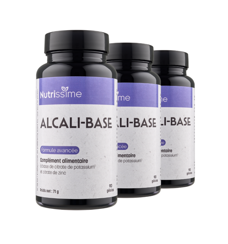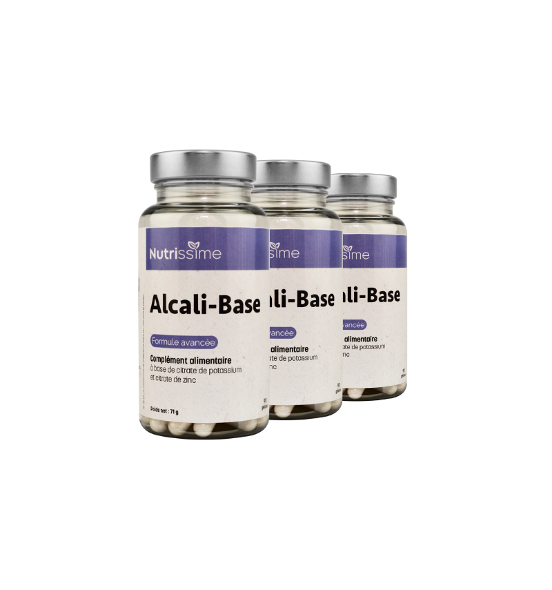 Alcali-base est un complément alimentaire de d'apport en potassium et zinc sous forme citrate hautement biodisponible. Formule sans additif.