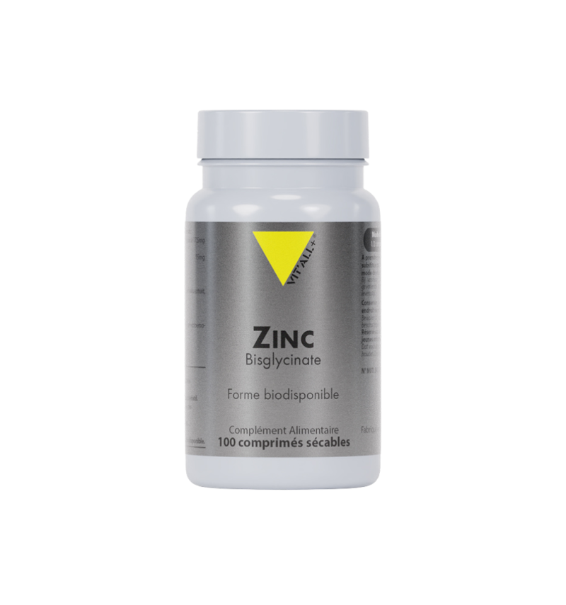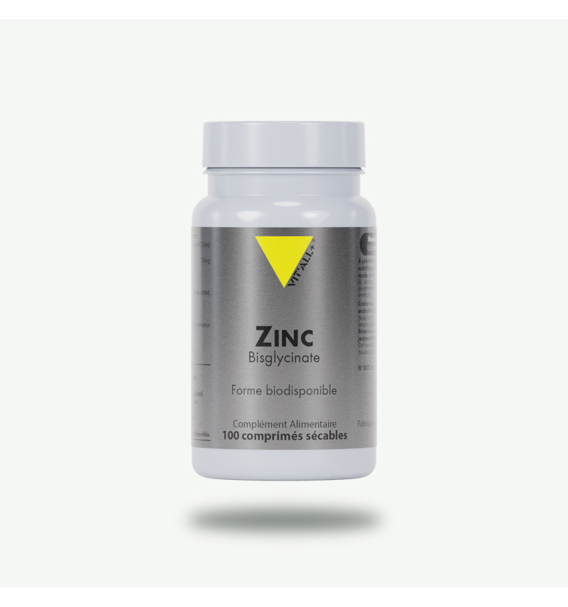 Zinc Bisglycinate - Vit'All+ : Un zinc hautement biodisponible pour soutenir votre système immunitaire, protéger vos cellules contre le stress oxydatif et maintenir la beauté de votre peau, cheveux et ongles. Formule bien tolérée, idéale pour une absorption optimale.