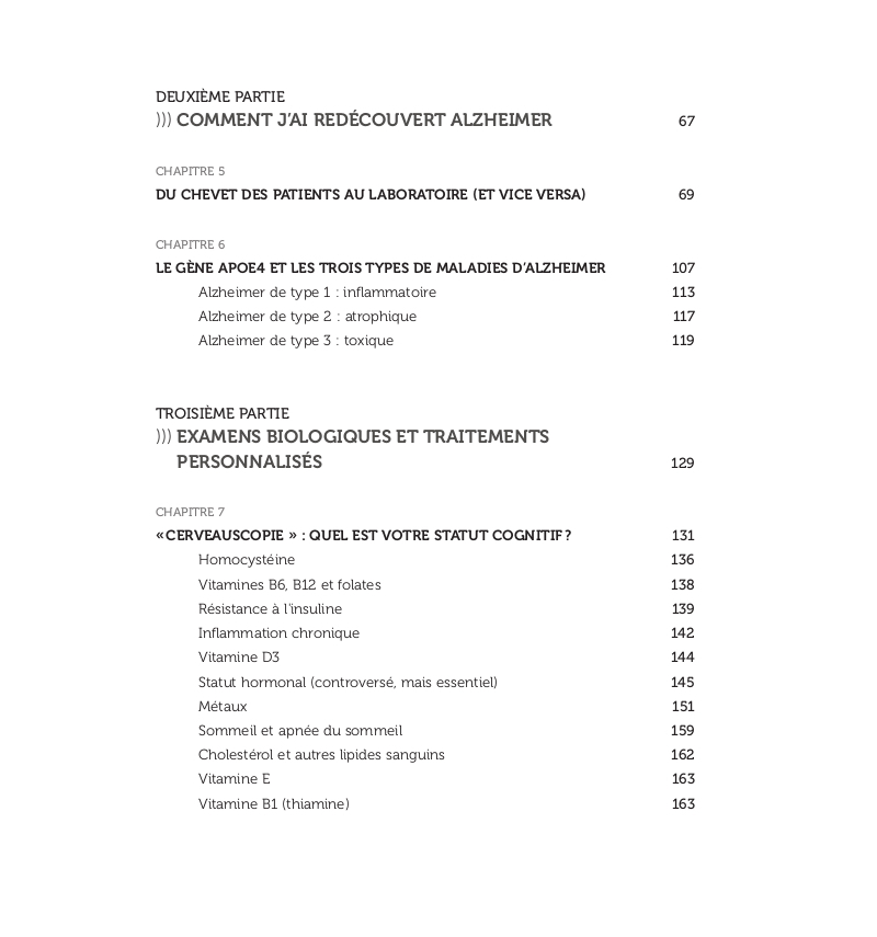 Destiné aux patients déjà aux prises avec la maladie d’Alzheimer, aux patients pré-Alzheimer et aux personnes ayant un risque élevé de développer la maladie, ce livre donne toutes les clefs pour inverser le déclin cognitif.