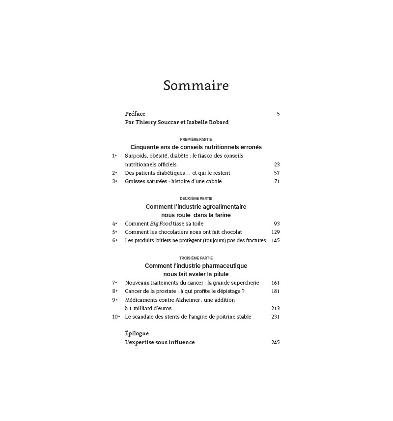 Plus de dix ans après Santé, mensonges et propagande de Thierry Souccar et Isabelle Robard, la nouvelle enquête de Jérémy Anso montre que même si les liens entre experts et industriels sont plus transparents, on continue de nous faire avaler n’importe quoi.