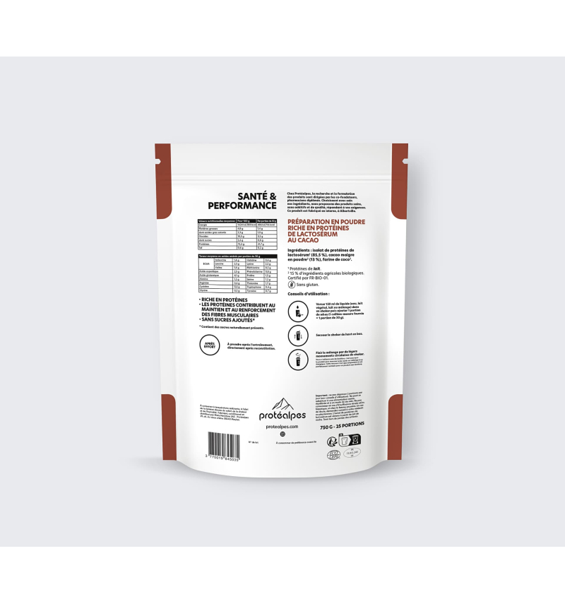 La Whey Protéine goût cacao Protéalpes est idéale pour tous ceux qui cherchent à optimiser leur récupération musculaire et maintenir un apport élevé en protéines. Sans additifs ni édulcorants, cette protéine pure est issue de lait de vaches de pâturages alpins, offrant une excellente biodisponibilité.