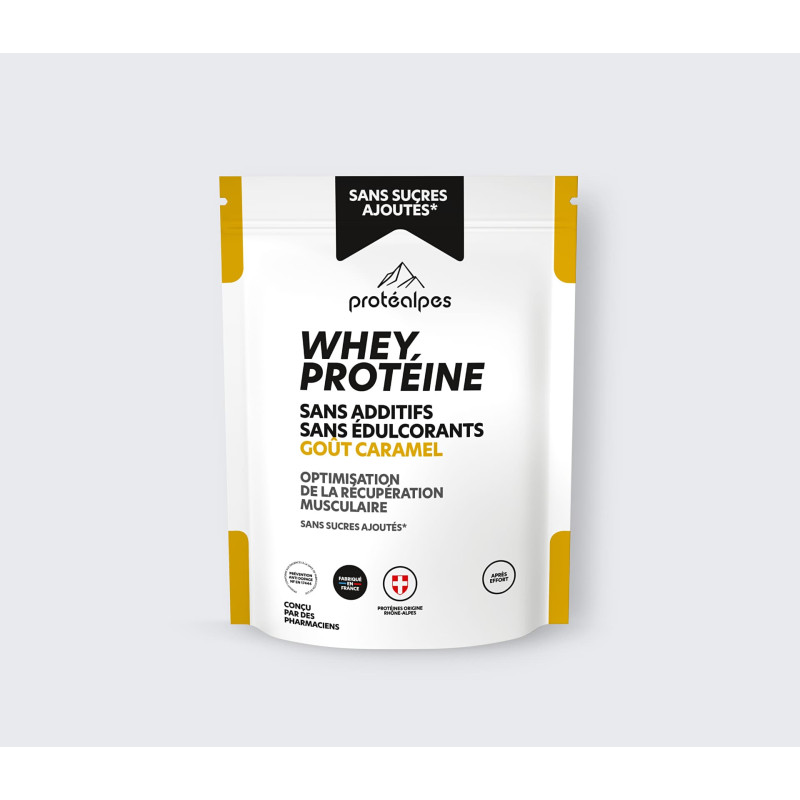 La Whey Protéine sans sucre goût caramel de Protéalpes est spécialement conçue pour ceux recherchant un goût non sucré tout en bénéficiant des avantages d’une protéine de haute qualité. Fabriquée à partir d’isolat de protéines de lactosérum provenant de lait de vaches élevées en pâturages alpins, cette whey se distingue par sa pureté : elle est sans additifs, sans édulcorants, et certifiée sans gluten. Riche en BCAA (acides aminés essentiels), elle est idéale pour le renforcement musculaire et la récupération.