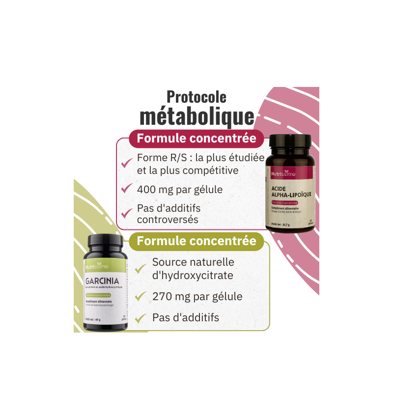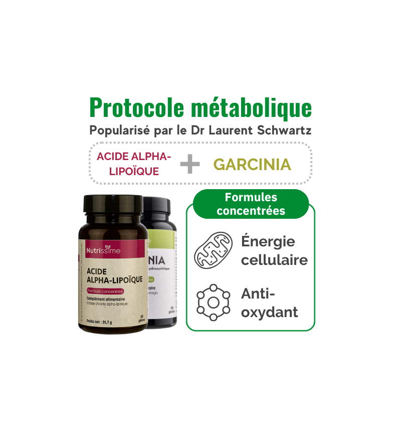 Le "protocole métabolique" a été popularisé par le Dr Laurent Schwartz. Il a pour but de soutenir le fonctionnement des mitochondries en apportant des actifs qui interviennent dans la production d'énergie cellulaire : acide alpha-lipoïque et acide hydroxycitrique ou hydroxycitrate issu de la plante garcinia. Ces actifs sont aussi disponibles séparément.