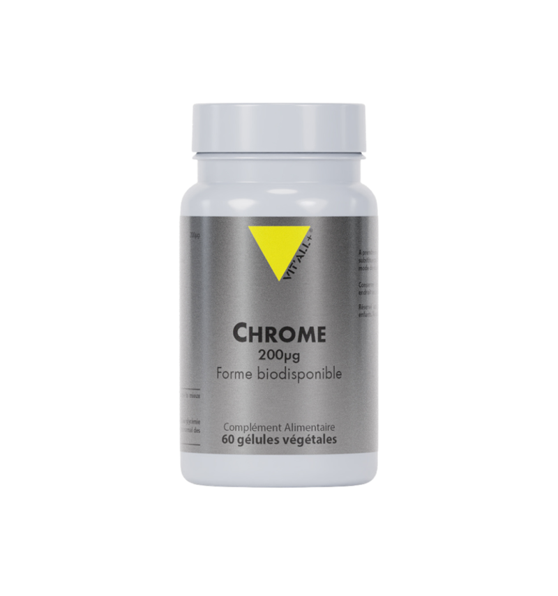 Le Chrome Picolinate 200 µg de Vit'all+ est une forme hautement assimilable de chrome qui contribue au maintien d’une glycémie normale et soutient la sensibilité à l’insuline.