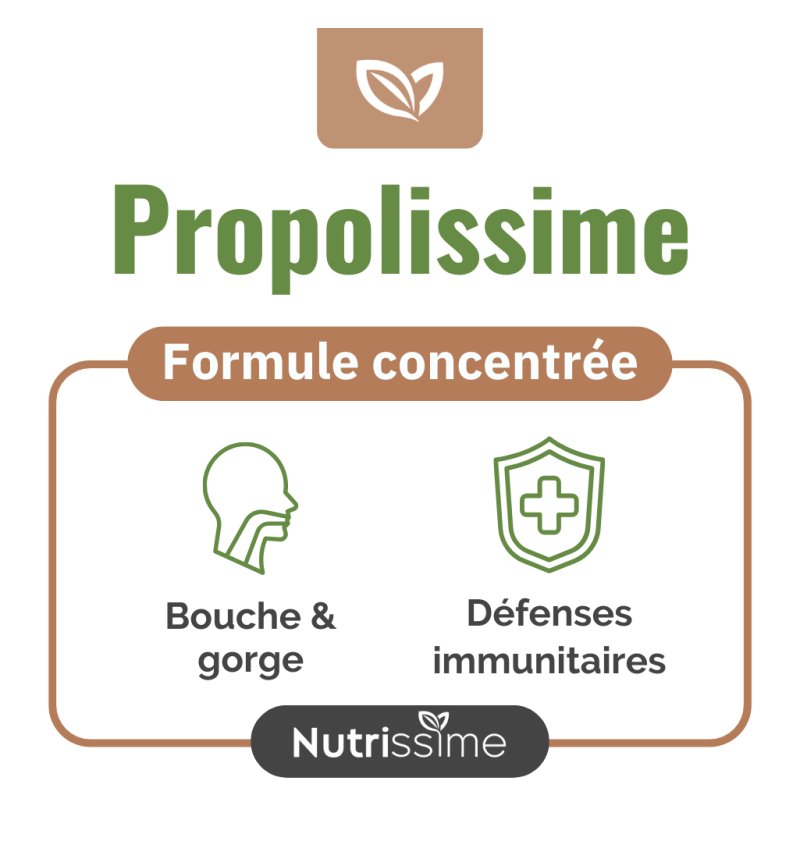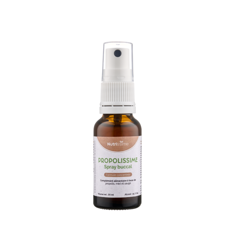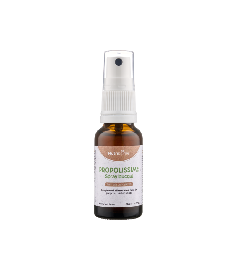 Propolissime est un spray buccal formulé à base d’ingrédients rigoureusement sélectionnés pour apaiser et protéger la gorge. Sa formule concentrée associe les bienfaits de la propolis, du miel, de la sauge et de l'huile essentielle thym, des actifs naturels plébiscités pour leur action assainissante et apaisante.