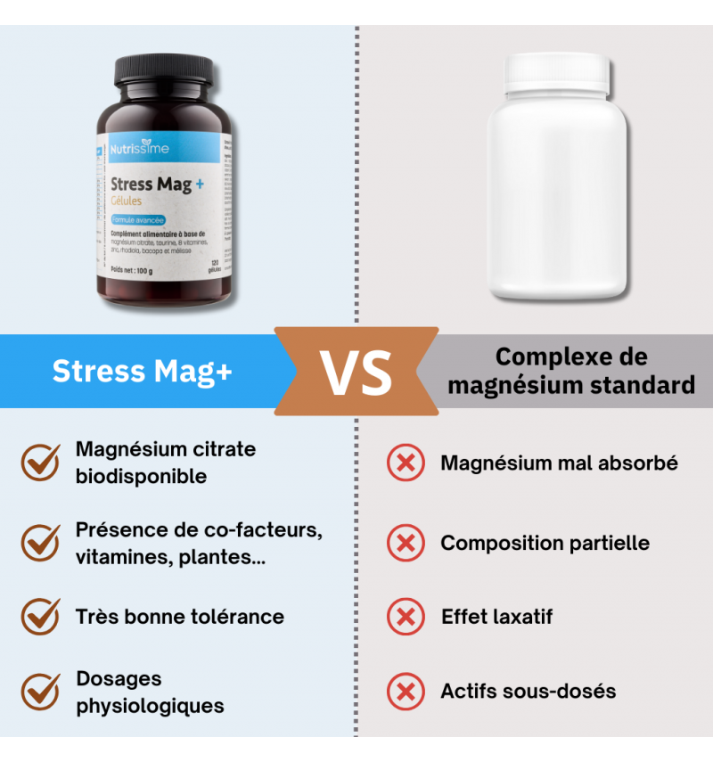 | Critère | Stress Mag+ (Nutristore) | Formules classiques |
