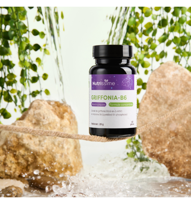 Découvrez Griffonia-B6, un complément alimentaire soigneusement formulé par la docteure en pharmacie Anne-Laure Denans, spécialiste française des nootropiques. Ce produit associe un extrait de Griffonia simplicifolia, source naturelle de 5-HTP, à la vitamine B6 sous sa forme biologiquement active, pour soutenir votre équilibre émotionnel et réduire la fatigue.