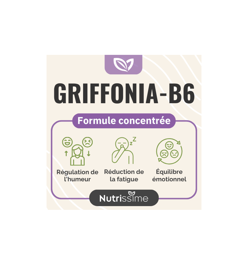 GRIFFONIA-B6 est particulièrement recommandé aux personnes sujettes à une baisse de moral, à une sensibilité émotionnelle accrue ou à des envies alimentaires incontrôlées. Ce complément peut vous convenir si vous :