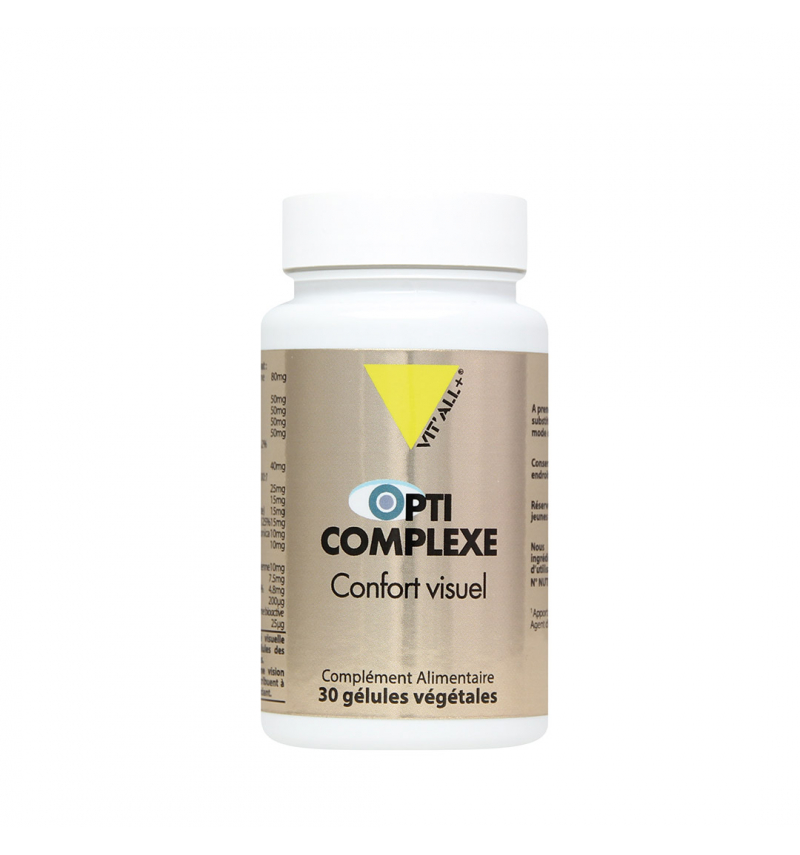 OPTICOMPLEXE est une synergie unique de nutriments essentiels, d’actifs végétaux de la famille des Caroténoïdes (Lutéine, Zéaxanthine, Bêta-carotène) et d’Extraits de plantes dont l’Euphraise, plus connue sous le nom de Casse-lunette. Avec Pycnogénol® et XanMax®.